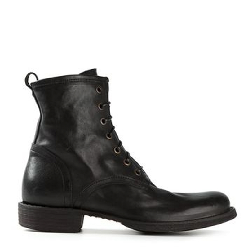 Schwarzer, robuster Elme Schnürstiefel aus Leder mit runder Spitze.