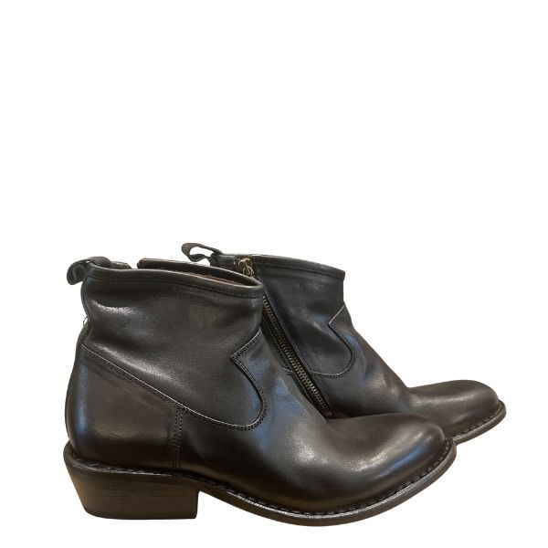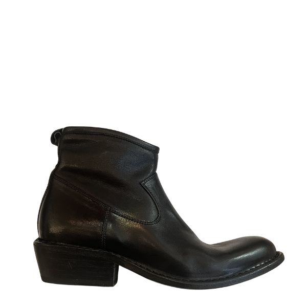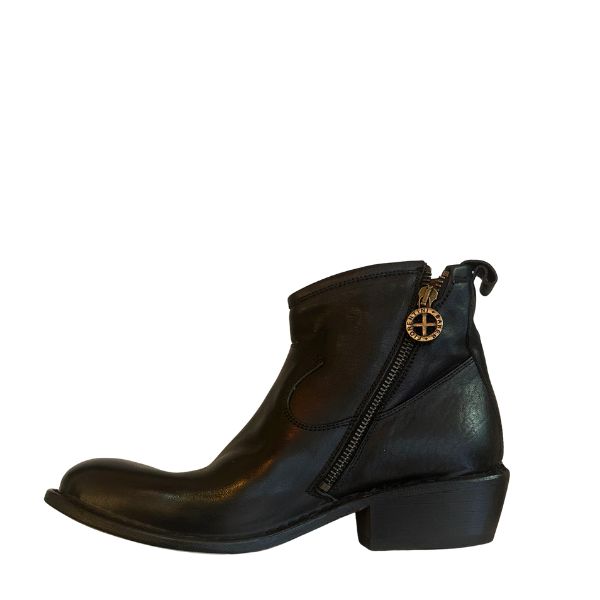 Schwarzer Leder-Ankle-Boot mit schrägem Reißverschluss, Absatzhöhe 3 cm