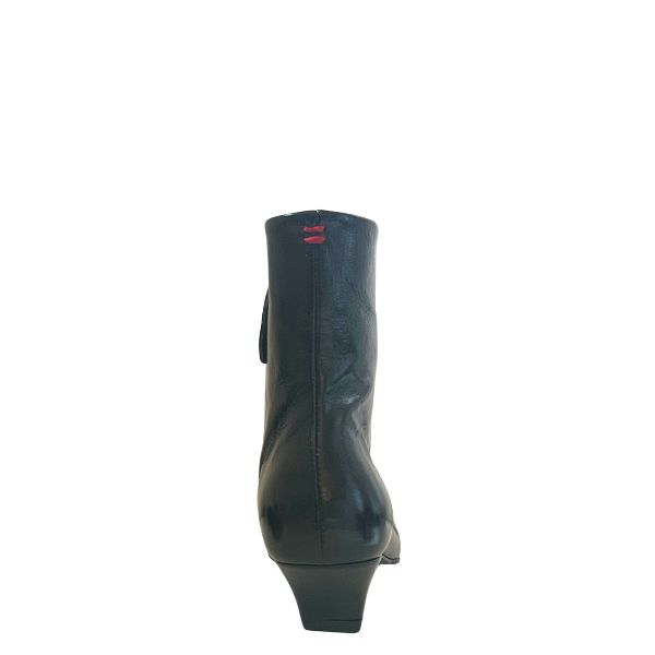 Schwarze, glänzende, spitz zulaufende Leder-Stiefeletten, kleiner Absatz 4 cm