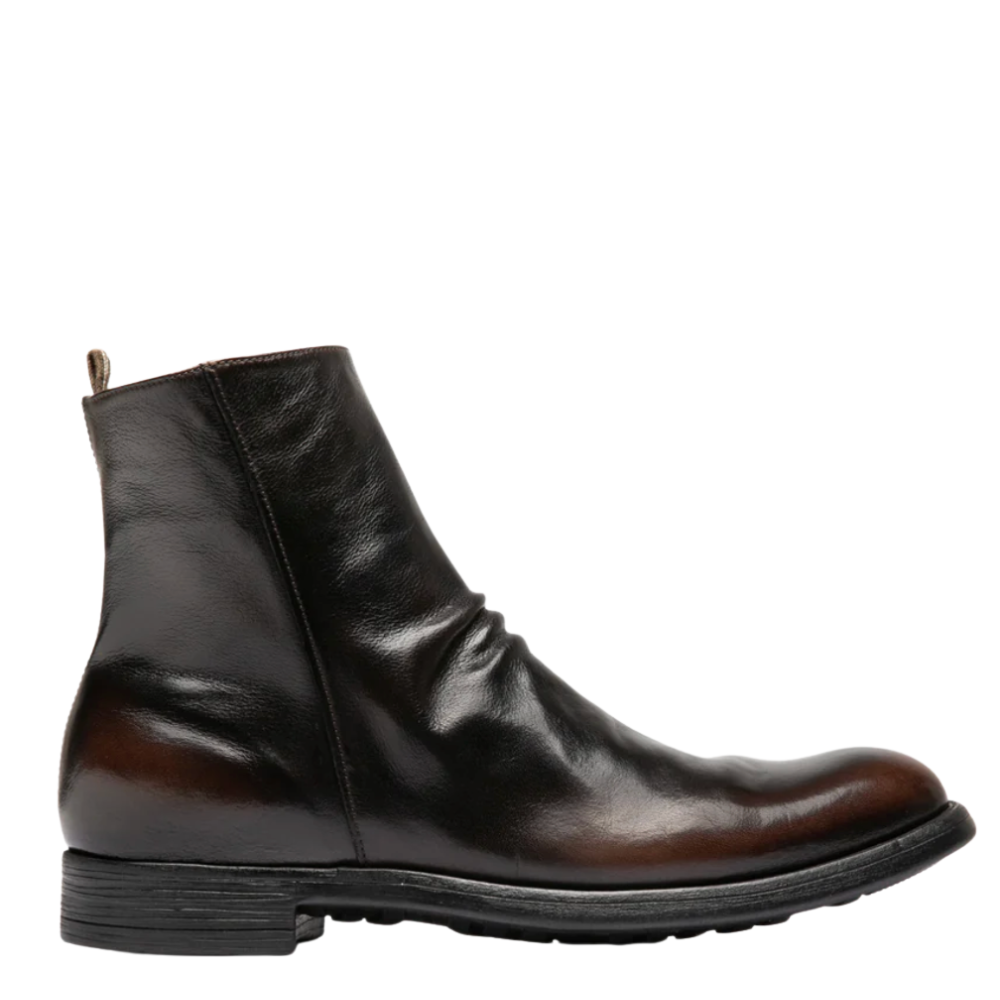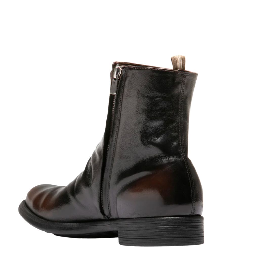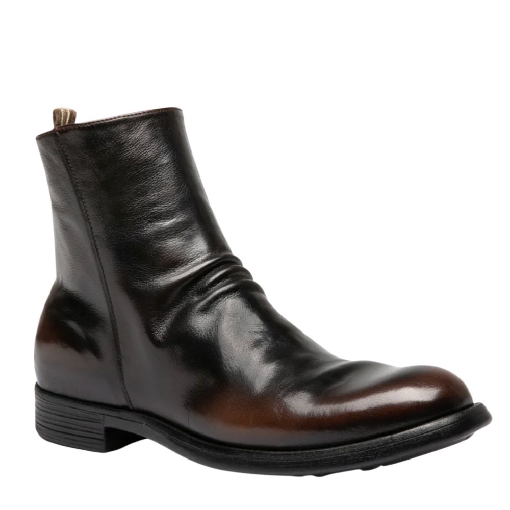 Dunkelbraune Chronicle Leder- Stiefelette mit Reißverschluss an der Innenseite und einer Gummisohle. Handgefertigt in Italien.