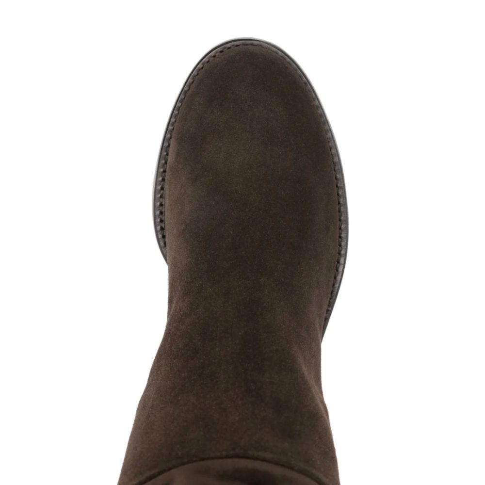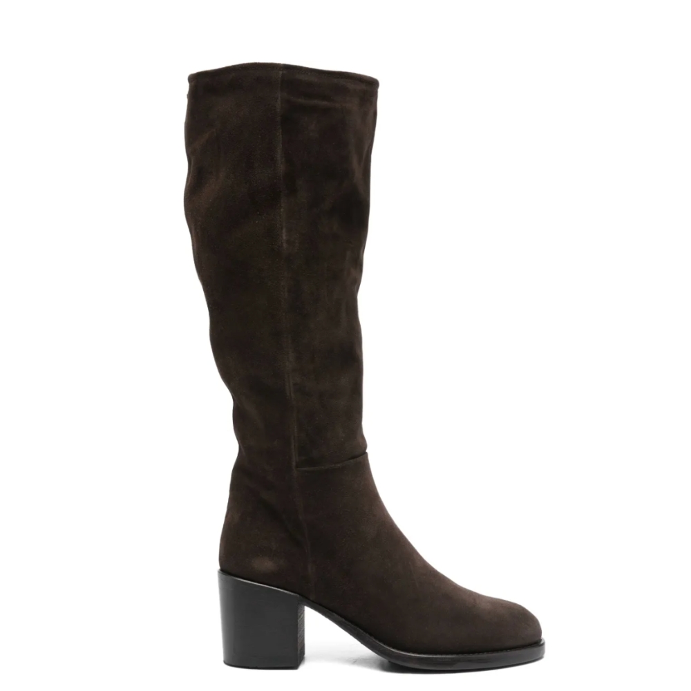 Dunkelbraune lange Wildlederstiefel, Absatz 5,5 cm