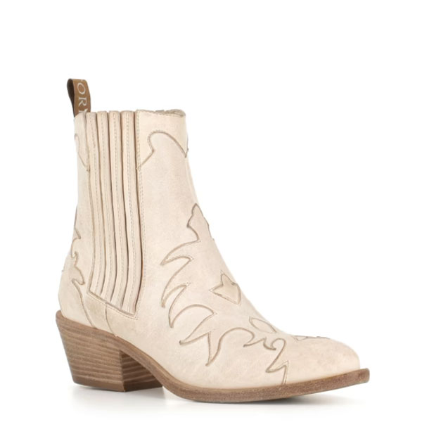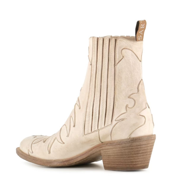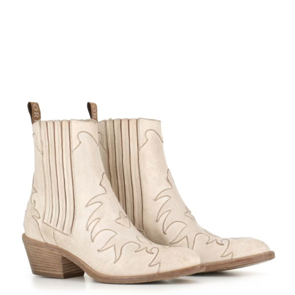 Off-white leather flame-stitch western boot, heel 3.5 cm