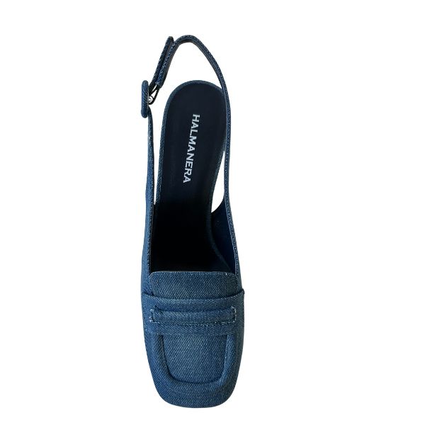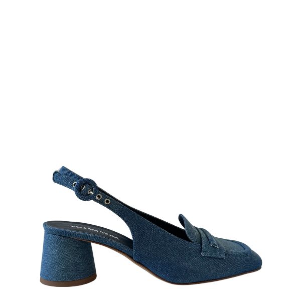 Denim stof met leer gevoerde slingbacks, ronde hak 5cm
