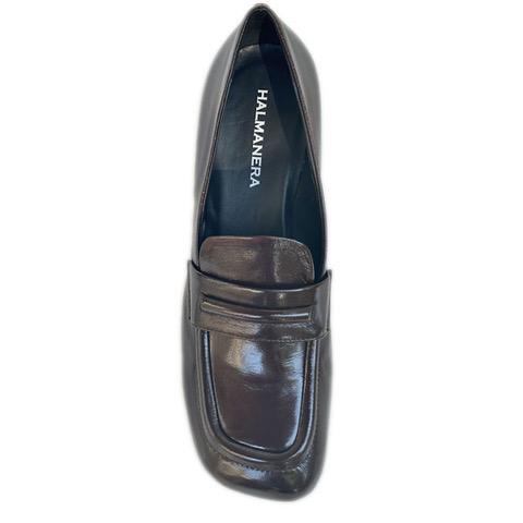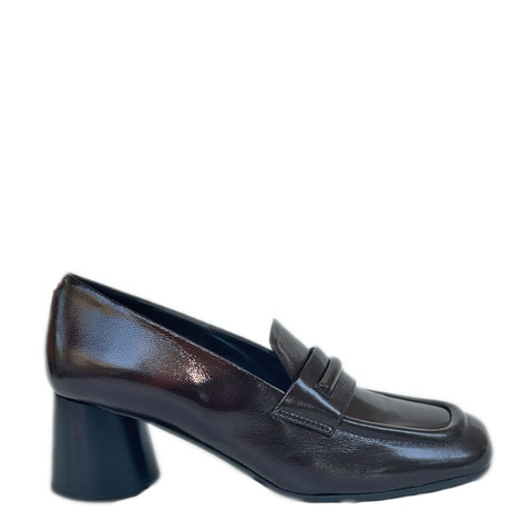 Bruine lakleren loafer, ronde hak 5,5 cm