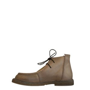 Bij MOMA zie je nooit een gladde, perfecte finish. De schoenen hebben altijd dat doorleefde randje: gewassen leer, zachte neuzen, geborsteld suède, handgemaakte patina’s — alsof ze al een leven achter de rug hebben. Dat is bewust. MOMA wil dat schoenen vanaf dag één vertrouwd aanvoelen.