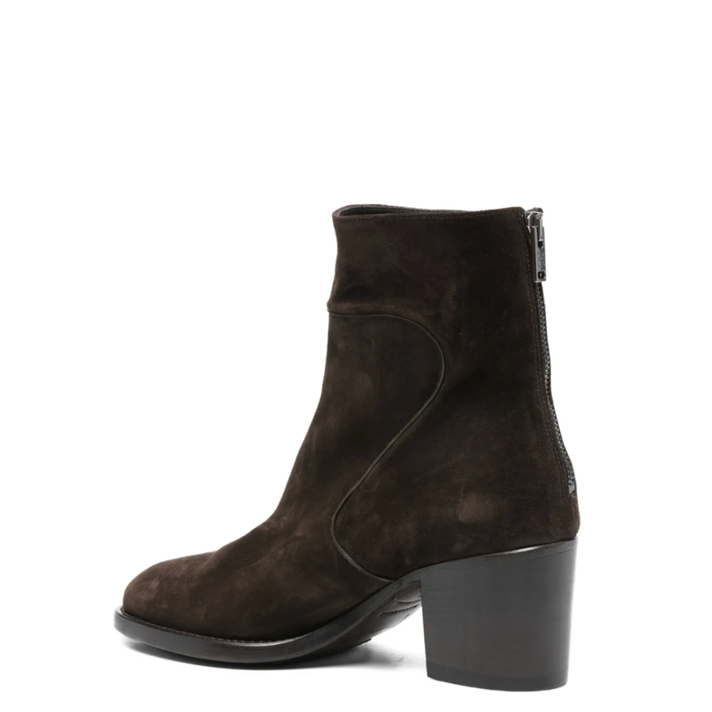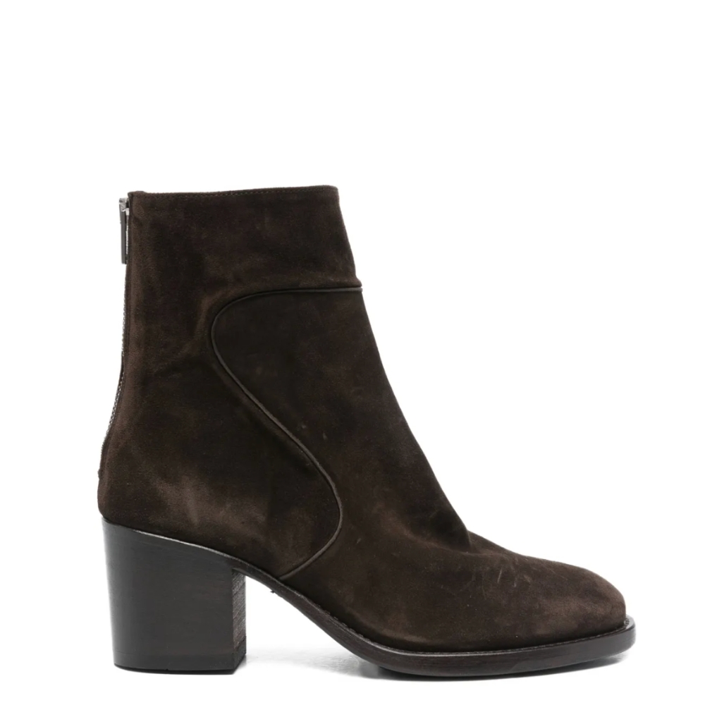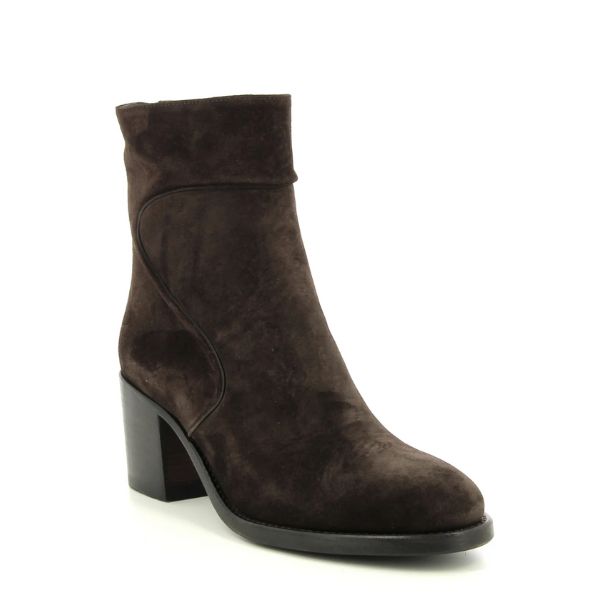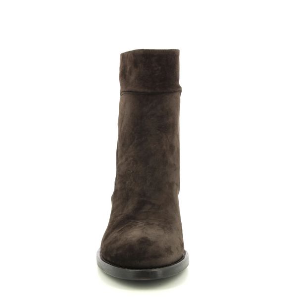 Donkerbruin suede enkellaars, hak 5,5cm