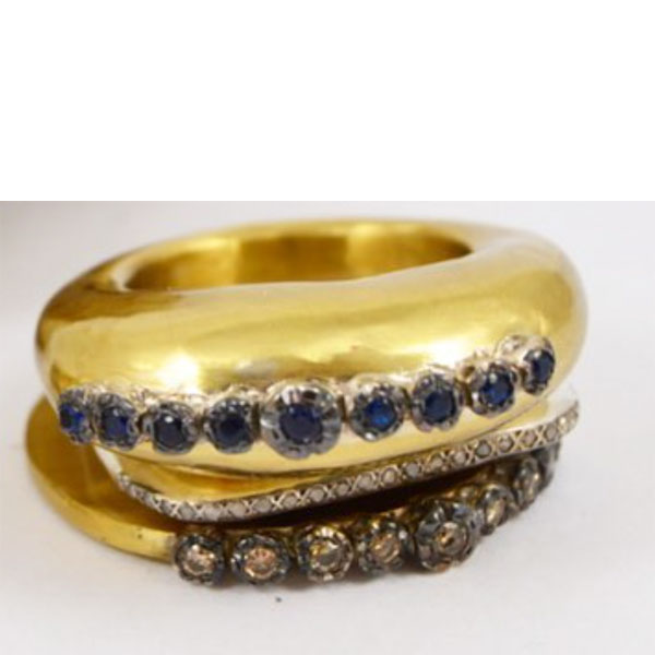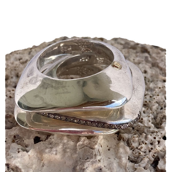 Bij alle Rosa Maria ringen zijn er eindeloze combinaties mogelijk. De combinatie op de steen is bijvoorbeeld de effen zilveren Angela met de Angela met zilveren diamanten in het midden. Elke Rosa Maria ring is prachtig op zichzelf, maar samen ontstaan eindeloos veel unieke combinaties.