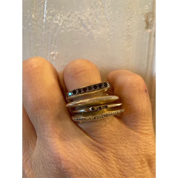 Rosa Maria zilveren Angela ring with 26 zilver grijze diamanten (0,13ct)