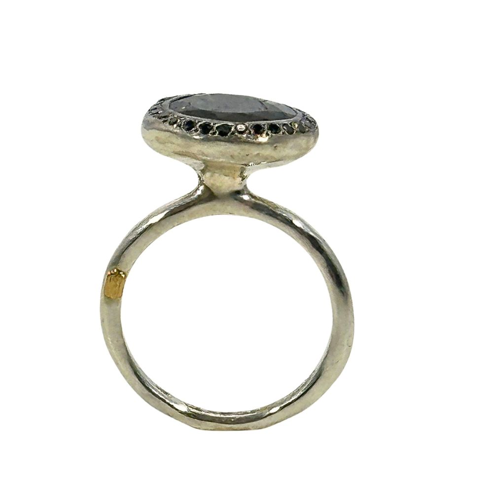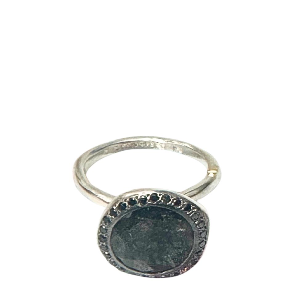 Zilveren Begum ring met een groene rutielkwarts van 2,9kt, omringd door 29 zwarte diamanten van 0,32kt