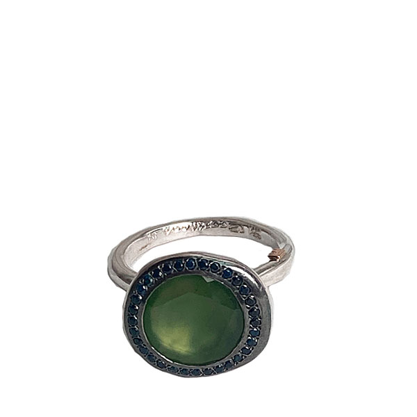 Zilveren Begum ring met 1 serpentijn van 3.83kt omringd met 29 saffieren van 0.34kt
