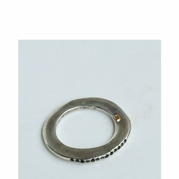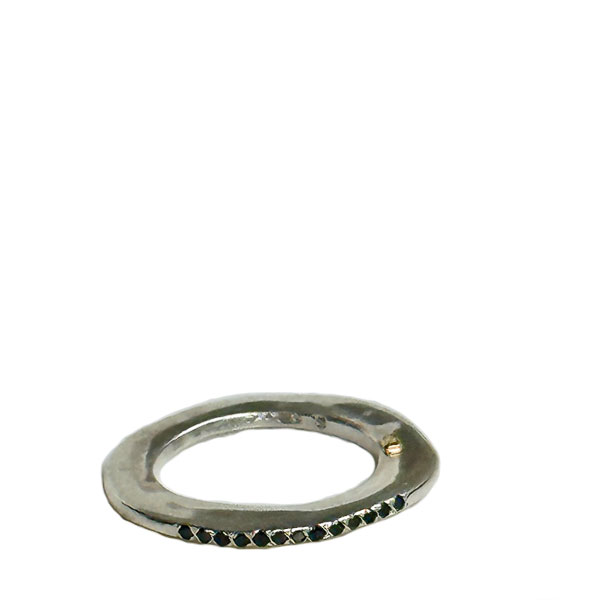 Rosa Maria platte dunne zilveren ring met 13 zwarte diamanten (0,18kt), gehamerd effect op de ring. Combineert goed met andere Haz ringen en ook met Sei en Poppy ringen.