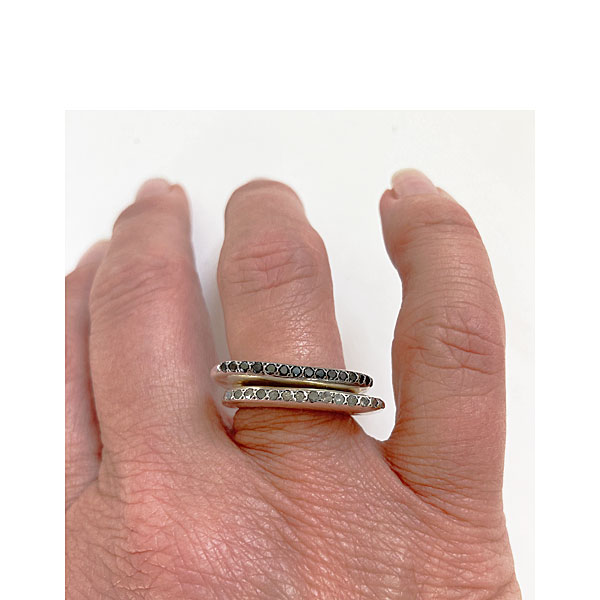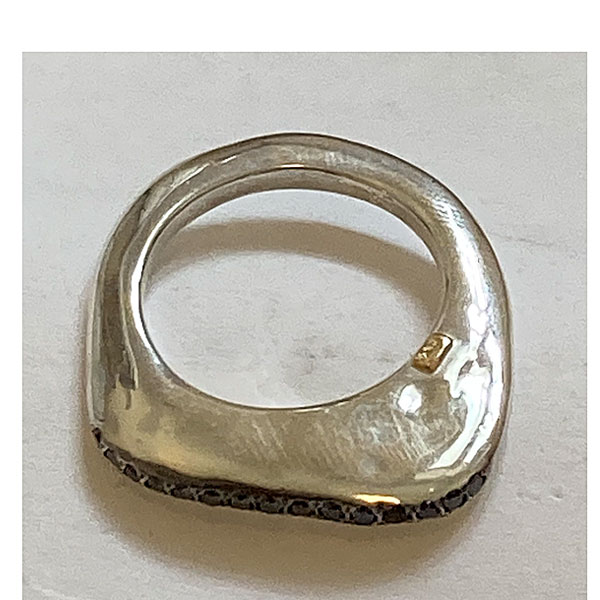 Zilveren hoekige ring met ingelegd met 15 zwarte diamanten van 0,30 kt