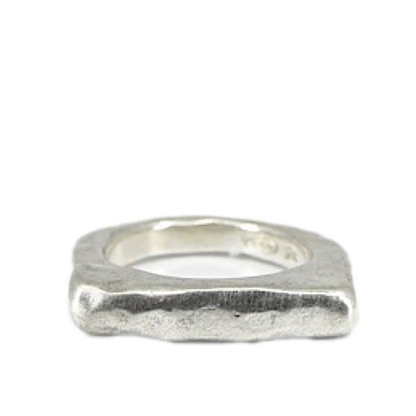 Rosa Maria zilveren Shiba ring,  vierkante vorm met een gehamerd effect.