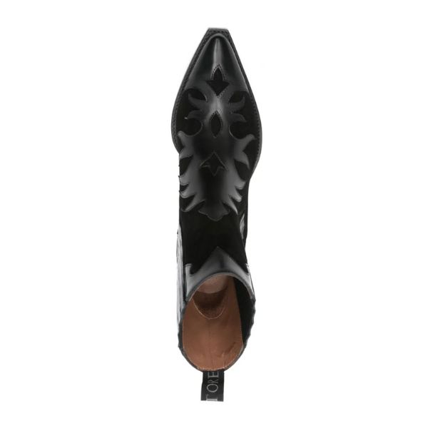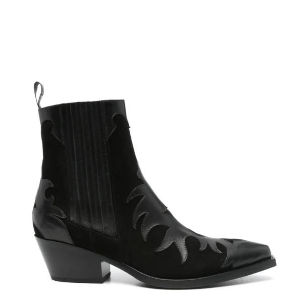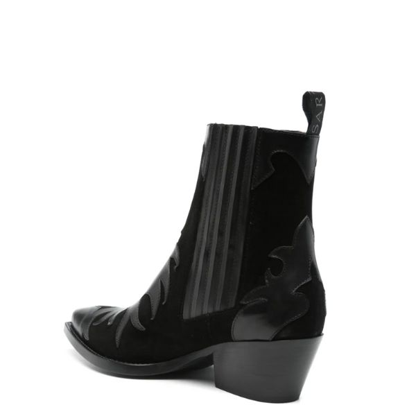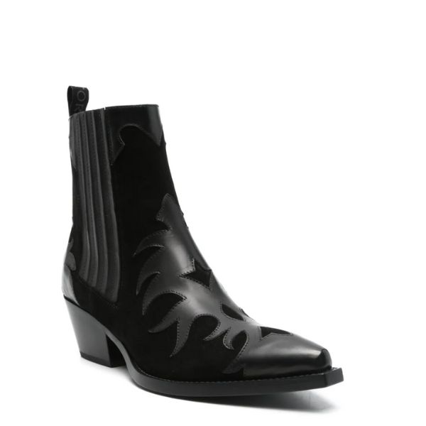 Zwart suede gevlamde western laars met zwart leren details, hak 3,5cm