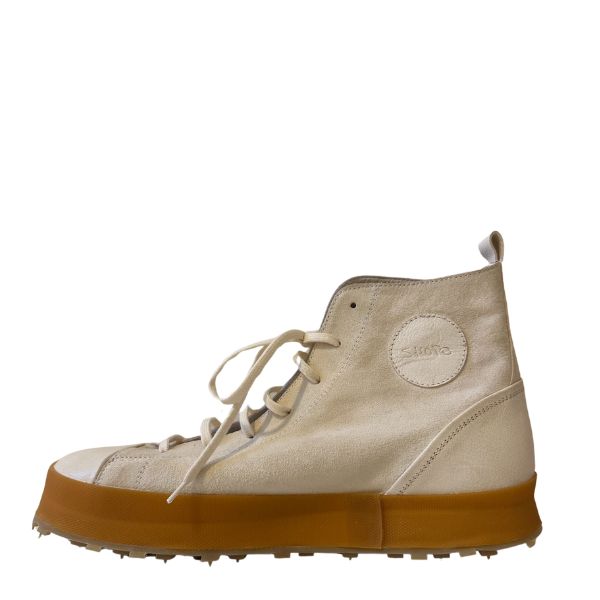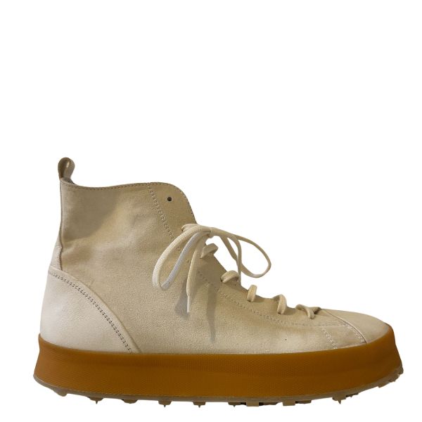 Off-white leren hoge sneaker met rubberen zool (3,5cm)