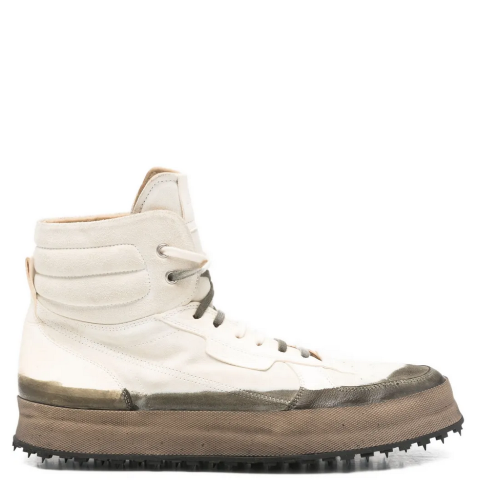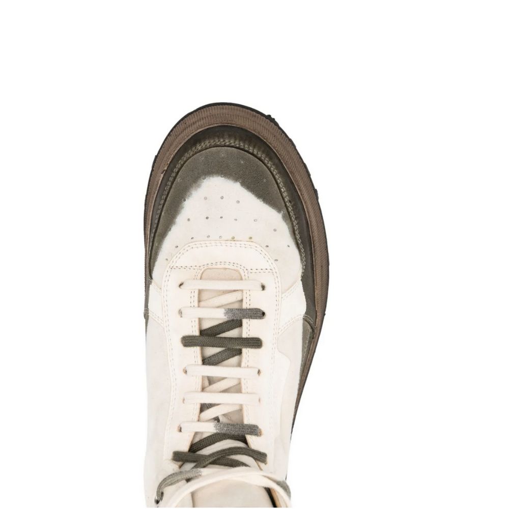 Off-white hoge leren sneakers van Shoto dip-dyed in kaki verf.