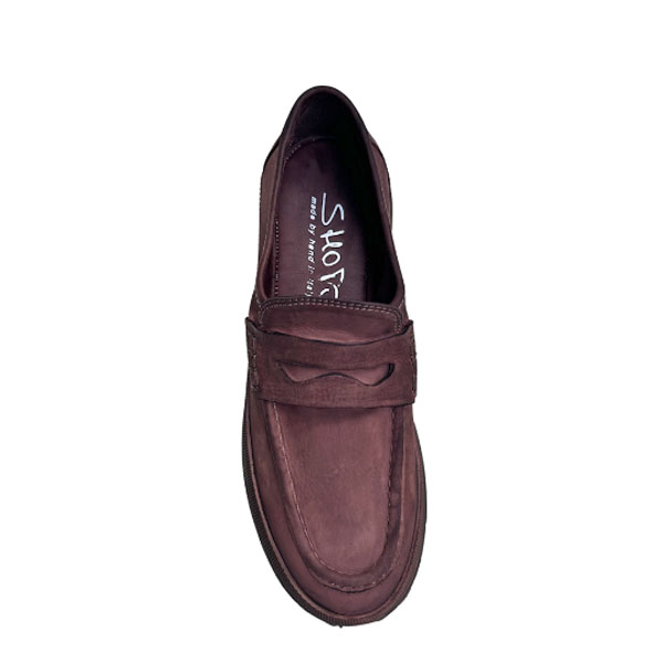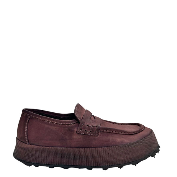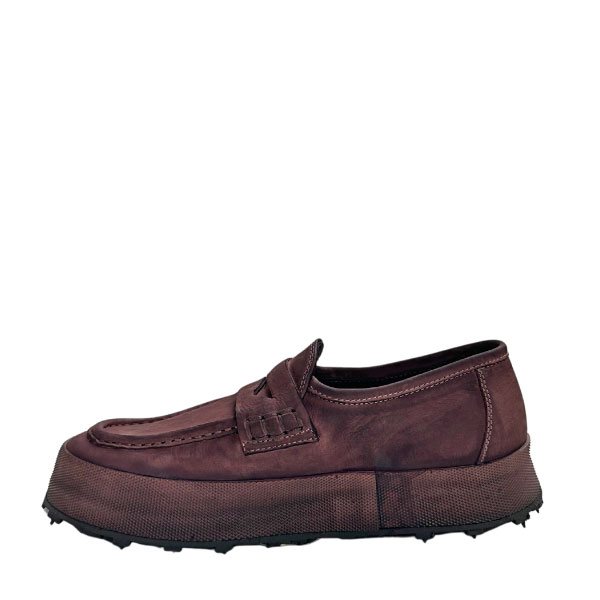 Bruinrood leren loafer met dikke ton-sur-ton gekleurde rubberen zool